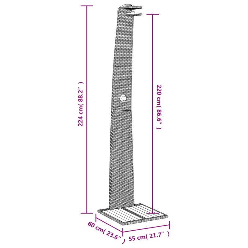 Външен душ сив 55x60x224 см полиратан и акациево дърво