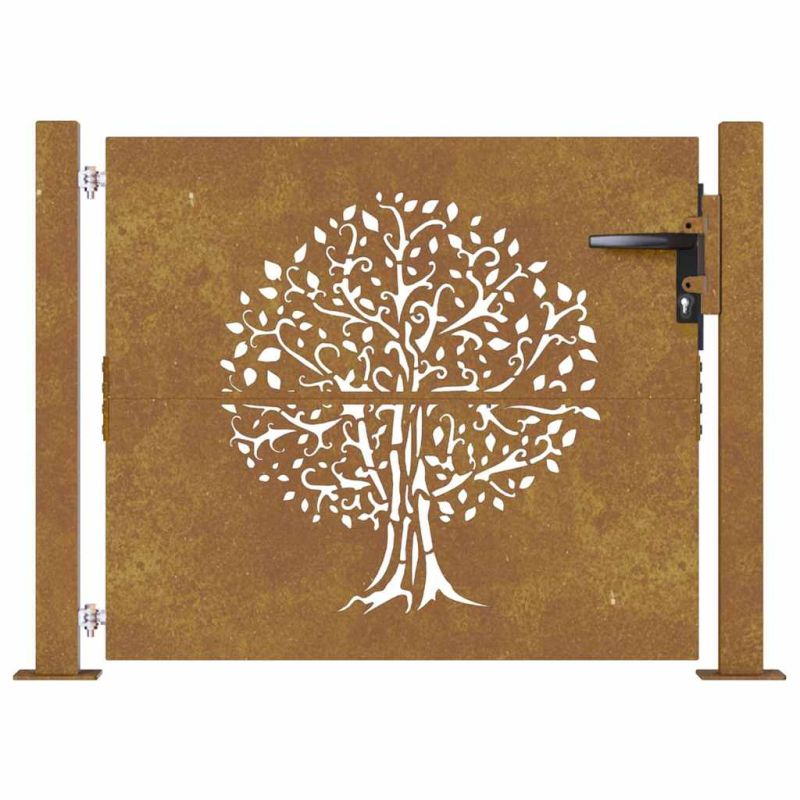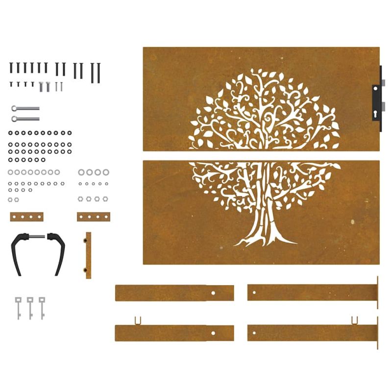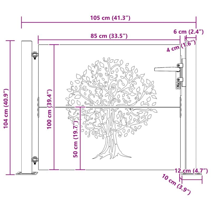 Тази градинска порта, отличаваща се с перфектна комбинация от здравина и елегантност, е идеална врата за оградата около вашата градина или вътрешен двор. Издръжлив материал: Металната врата е изработена от кортенова стомана. Кортенова стомана, известна също като патинираща стомана. Тя е антикорозионна по своята същност. Развива ръждив защитен слой срещу корозия при първото излагане на атмосферни условия. Следователно не е необходимо да я боядисвате. Това може да ви помогне да спестите разходи за поддръжка и ремонт. Отличителният кафяв цвят на кортеновата стомана със сигурност ще привлече вниманието. И накрая, патиниращата стомана е изключително издръжлива и ще издържи изпитанието на времето. Лазерно изрязан дизайн: Страничната порта има красив лазерно изрязан дизайн, който добавя специален чар към вашия дом.Заключваща се система: Стоманената порта е оборудвана със заключваща се система за допълнителна сигурност.Стабилна основа: 4-те монтажни отвора в основата на стълба на портата ви позволяват да го фиксирате към земята за допълнителна стабилност. Добре е да се знае:Този продукт трябва да бъде сглобен.Този продукт все още не е ръждясал и когато го получите ще има нормален метален цвят, но ръждата ще се появи с течение на времето. Можете да ускорите процеса на ръждясване, като го напръскате със сапунена и солена вода. За да запазите дрехите си от петна, избягвайте контакт с образуващия се слой ръжда. Не използвайте този артикул, ако някой от компонентите е счупен, скъсан или липсва.