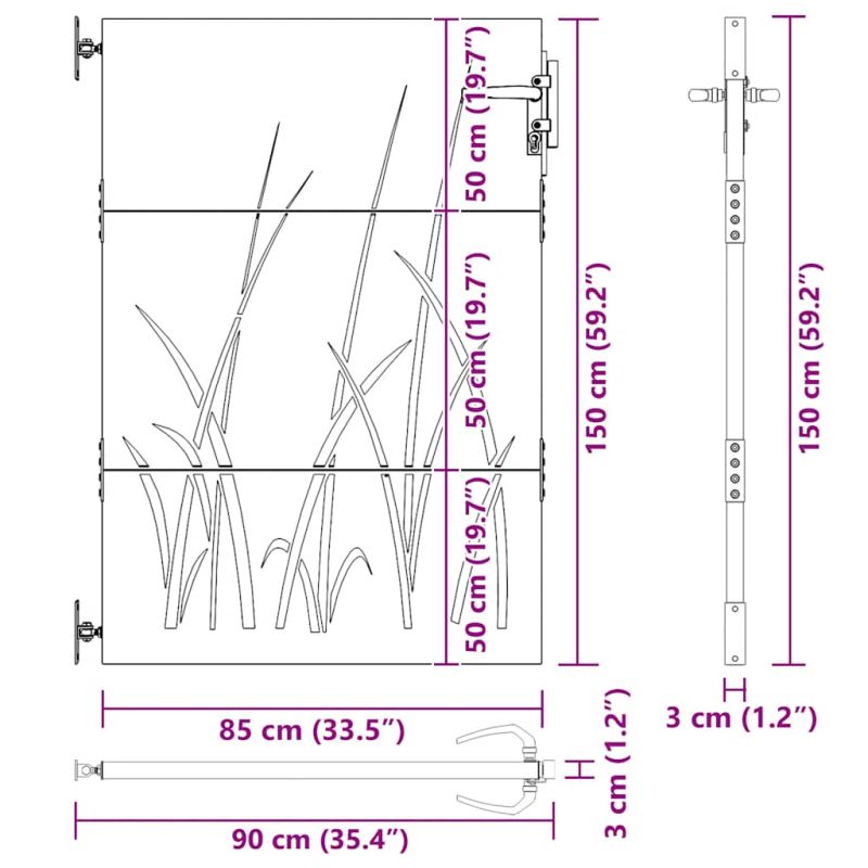 Градинска порта 85x150 см, дизайн с кортен стомана и трева