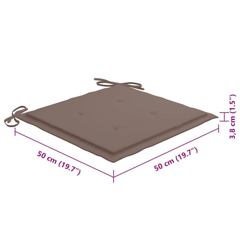 Добавете допълнителен комфорт към вашата зона на открито с този комплект дървени градински столове. Той е идеален за разговори със семейството и приятелите или просто да се насладите на успокояващите слънчеви бани! Този комплект градински столове е изработен от масивна акациева дървесина с маслено покритие, която представлява твърда дървесина с плътни шарки. Грубата акациева дървесина има силата да издържи на тежестта, а също и на износване във времето. Този дървен комплект столове е стабилен, издръжлив и устойчив на атмосферни влияния. Освен това повърхността с маслено покритие прави столовете лесни за почистване с влажна кърпа. Нещо повече, включените в комплекта възглавници осигуряват допълнителен комфорт. Забележка: За да удължите живота на вашите градински мебели, препоръчваме ви да ги почиствате редовно и да не ги оставяте ненужно на открито без защита.Почистване: Използвайте мек сапунен разтворСъхранение: Ако е възможно, съхранявайте на хладно и сухо място на закрито. Ако продуктът се съхранява на открито, защитете го с водоустойчиво покривало. Избършете и изсушете излишната вода или сняг от плоските повърхности след дъжд или снеговалеж. Позволете достатъчно циркулация на въздуха, за да избегнете повреди, свързани с влагата. Максимално 110 кг на седалка.