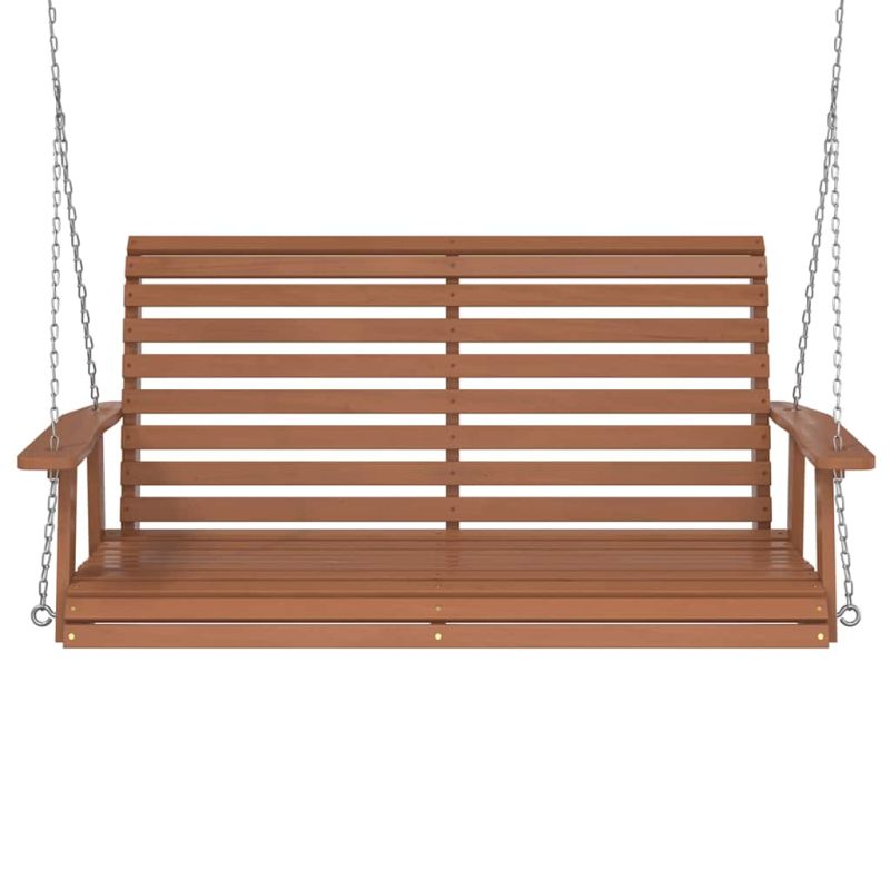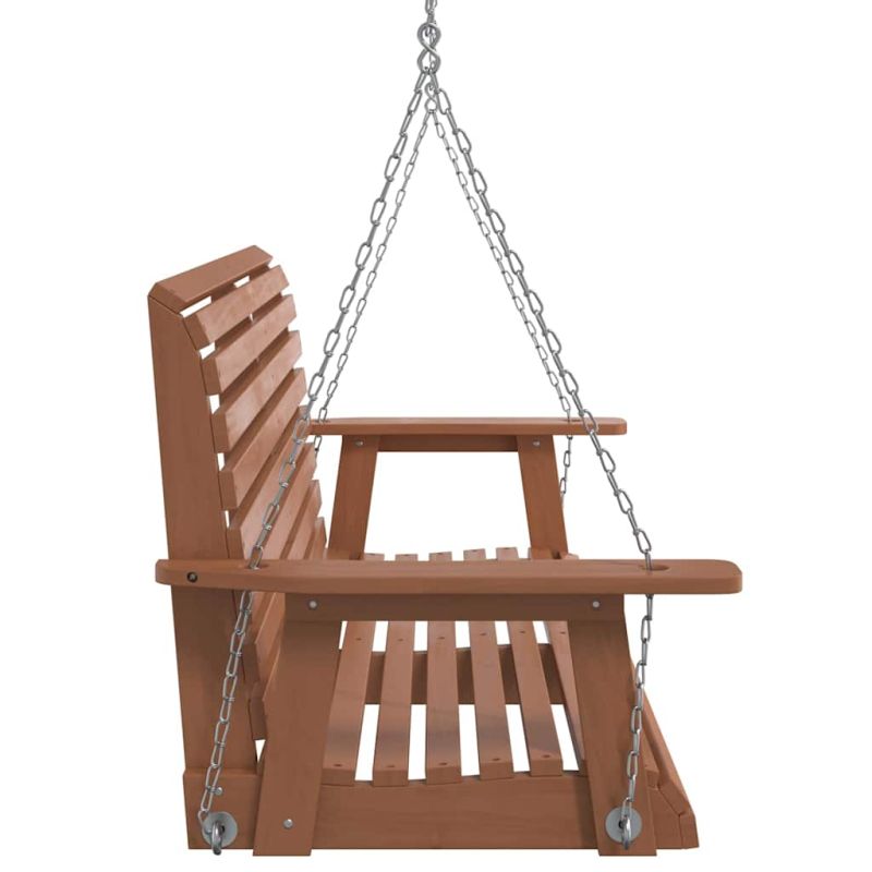 Градинска люлееща пейка с метални вериги, кафяв, чам масив