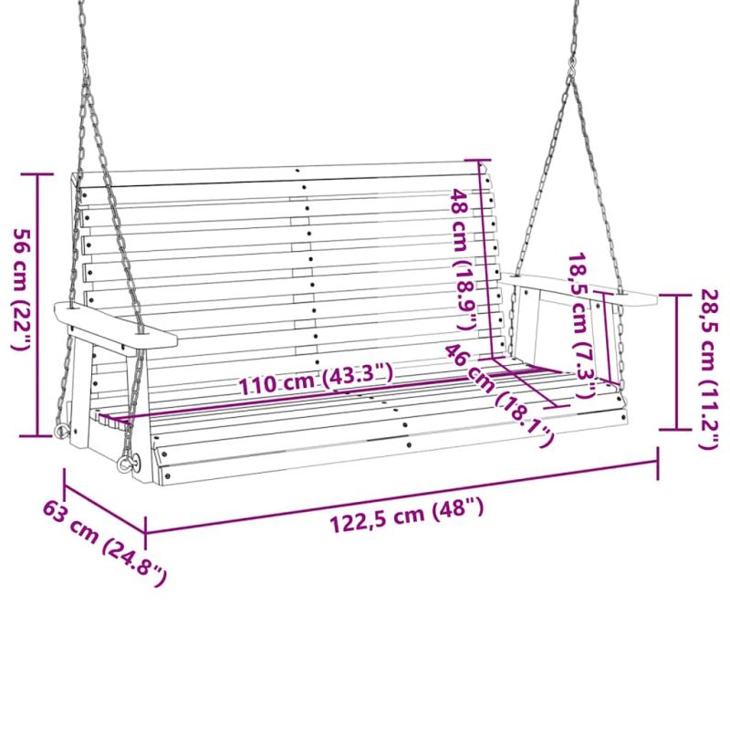 Тази градинска люлееща пейка е идеално допълнение към задния двор, верандата, вътрешния двор, градината или дори към парка. Той е идеалното място да се насладите на слънчевия ден с цялото семейство. Устойчив на атмосферни влияния и дълготраен: Тази градинска люлееща пейка е изработена от масивна чамова дървесина с боядисана повърхност, което гарантира издръжливост, дълготрайност и изключителна устойчивост на атмосферни влияния, което я прави идеален избор за използване на открито.Здрави и регулируеми вериги: Тази люлееща се пейка за открито е снабдена с 2 здрави метални вериги, които осигуряват висока безопасност по време на люлеене. Освен това височината на окачване може да се регулира, за да пасне на потребители с различен ръст.Ергономичен дизайн: Тази люлка за веранда има висока ергономична облегалка, която се приспособява към гърба ви и осигурява оптимална опора. Широките подлакътници осигуряват допълнителна опора за ръцете ви, а просторната зона за сядане осигурява удобно и приятно усещане при седене.Добра вентилация: Дизайнът с ламели осигурява циркулация на въздуха и предотвратява знойната топлина.Широко приложение: Тази люлка за веранда може да бъде забележително допълнение към всяко вътрешно или външно пространство, като градината, вътрешния двор, верандата, балкона, парка и др. Можете да я монтирате на стойка за люлката (не е включена в комплекта), на тавана или на дървото (изисква се закрепване на стойки за окачване, които не са включени в комплекта). Добре е да се знае:Този продукт не е подходящ за употреба при лоши метеорологични условия, като силен вятър, силен дъжд, сняг, бури и др.