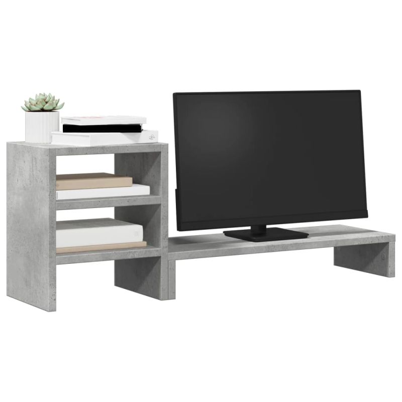 Поставка за монитор с органайзер за бюро бетонно сив инж. дърво