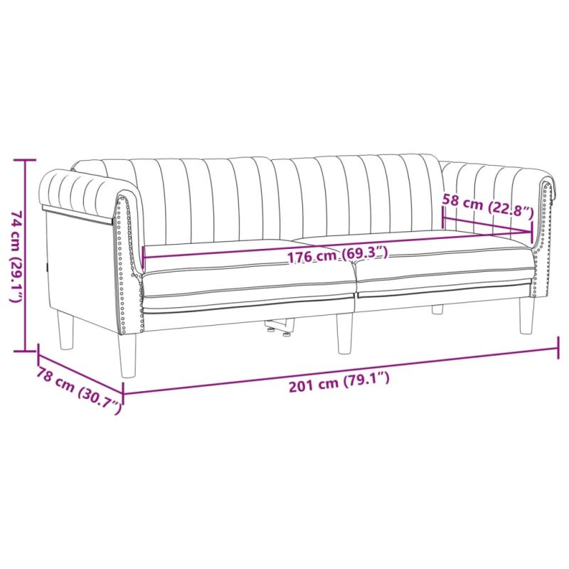 Този комплект дивани е отлично място за вашето време за разговори, четене, гледане на телевизия или просто почивка. Той е предназначен да бъде фокусна точка във вашия дом. Меко кадифе: Кадифето е мека и удобна материя, която се усеща приятно върху кожата. Удобно седене: Креслото е изключително удобно с дебело подплатената седалка, подлакътниците и облегалката. Поддържащи крака: Тапицираният диван се поддържа от здрави крака, които гарантират неговата стабилност, безопасност и здравина. Атрактивен дизайн: Отличаваща се със семпъл, но модерен дизайн, тази мека мебел за всекидневна е предназначена да привлича вниманието във вашата стая. Максимално 110 кг на седалка. Съобразете се с риска от открит огън и други източници на силна топлина в близост до продукта.