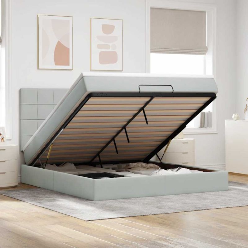 Използвайте това легло с матраци, за да се насладите на спокоен нощен сън! То ви предлага както решение за съхранение, така и комфортен сън. Мек и удобен материал: Кадифената материя се отличава с мека и гладка повърхност, която създава приятно усещане върху кожата, като ви носи топлина и максимален комфорт.Матрак с джоб пружини: Този матрак с джоб пружини има индивидуални пружини с джобчета, които работят независимо, за да осигурят персонализирана опора, като реагират само на натиска във всяка област. Този дизайн предотвратява "свличането" към средата на матрака и намалява прехвърлянето на движение в сравнение с традиционните матраци с отворени намотки. Всяка покет пружина поддържа тялото индивидуално.Достатъчно място за съхранение под леглото: Благодарение на хидравличния повдигащ механизъм рамката на леглото предлага обширно пространство за съхранение под леглото, което увеличава пространството, без да заема допълнителна площ. Само с едно издърпване на дръжката основата на ламелите се повдига плавно, което ви позволява да прибирате вещите си бързо и без усилие.Удобен горен матрак: Този топ матрак подобрява опората и комфорта със своята мека, дишаща повърхност, като същевременно удължава живота на вашия матрак. Подвижният му калъф позволява лесно изпиране, което прави поддръжката лесна. Добре е да се знае:От хигиенни съображения матракът не може да бъде върнат, ако опаковката е отстранена или отворена.