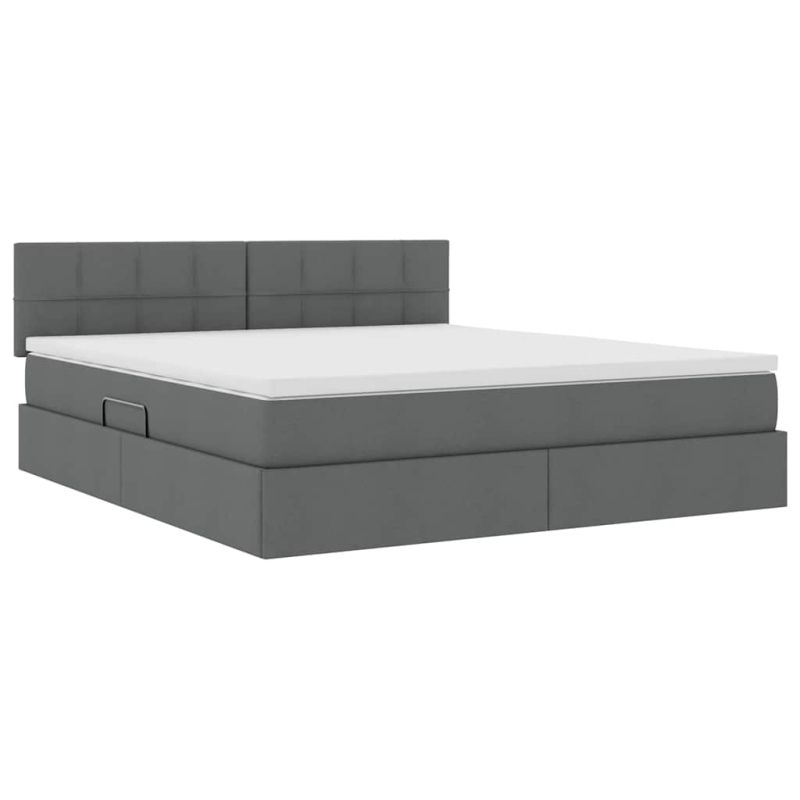Легло с място за съхранение и LED с LED Тъмен сив 160 x 200 cm