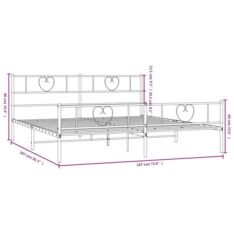Метална рамка за легло с горна и долна табла, бяла, 180x200 см