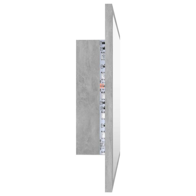 LED огледало за баня, бетонно сиво, 60x8,5x37 см, акрил