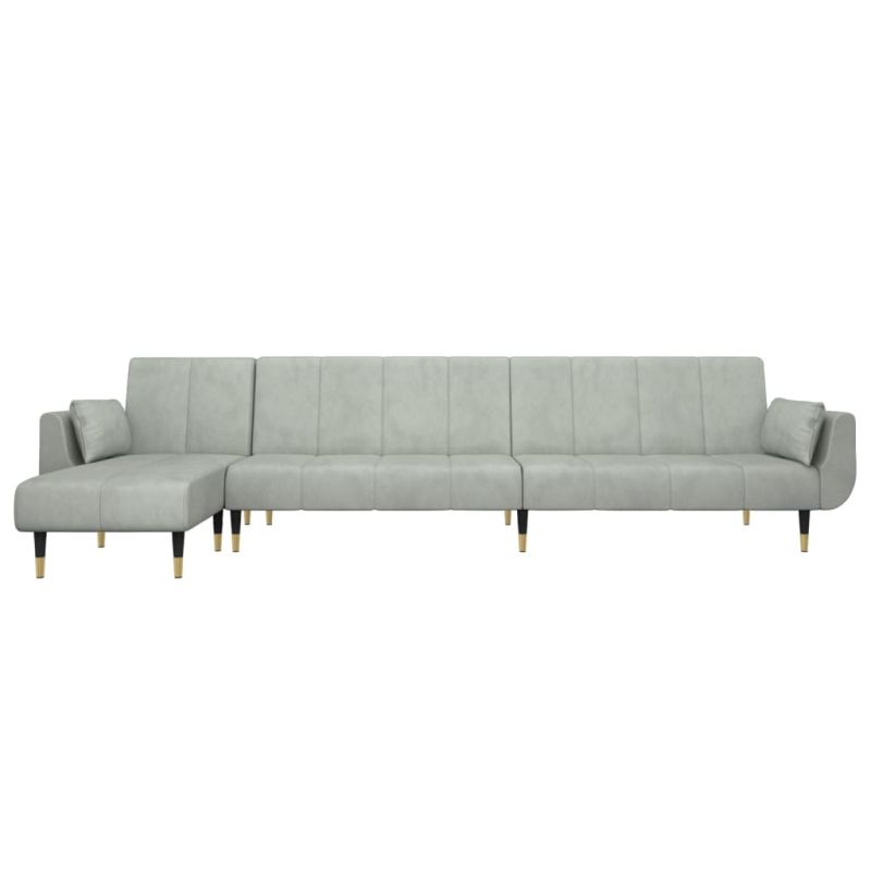 Г-образно разтегателно канапе светлосиво 275x140x70 см кадифе