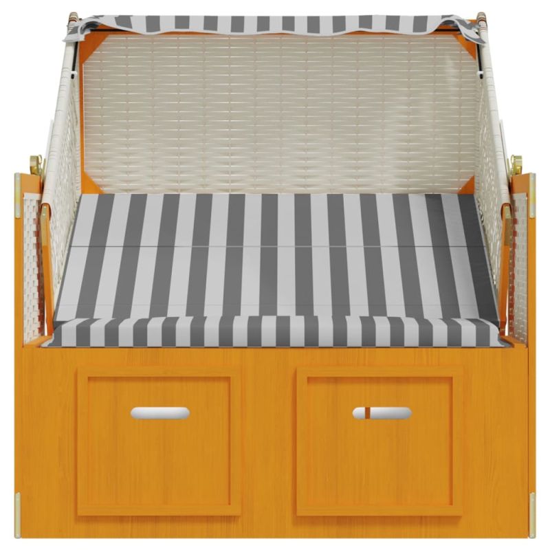 Strandkorb с навес, полиратан и масивно дърво, бяло и сиво