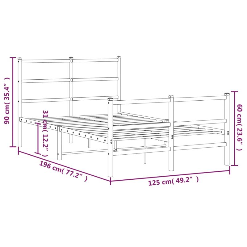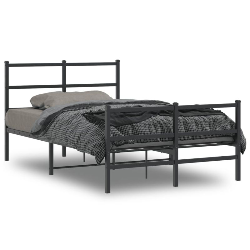 Метална рамка за легло с горна и долна табла, черна, 120x190 см