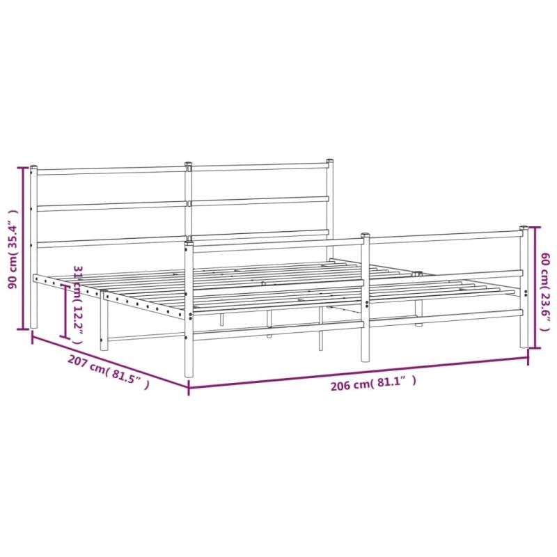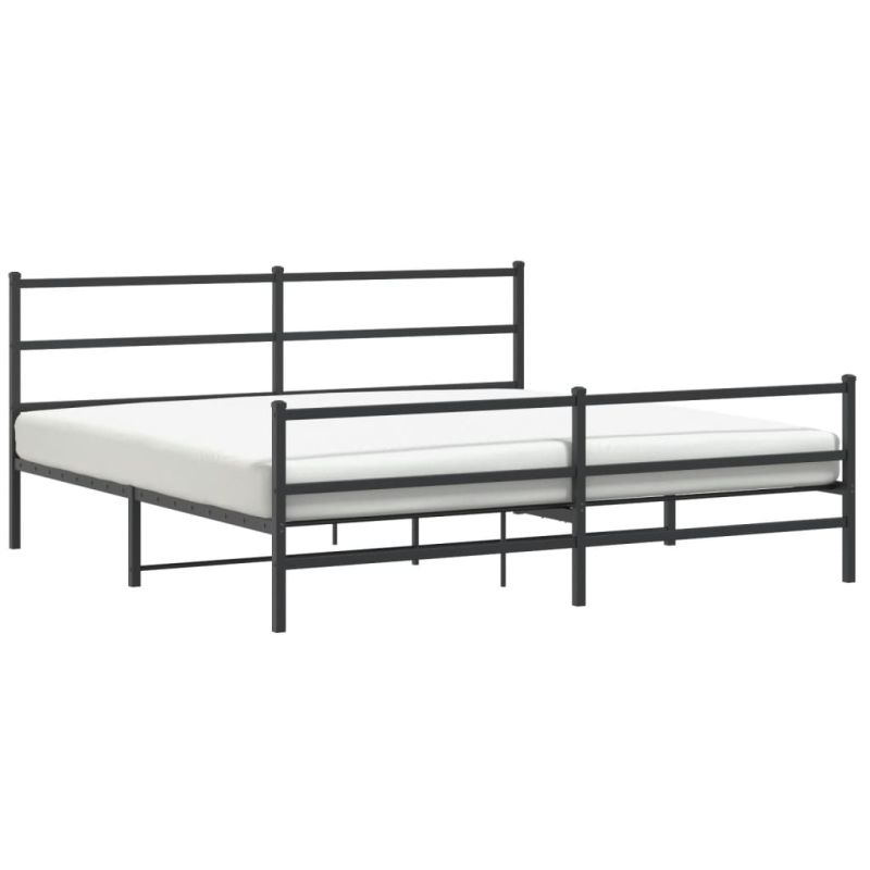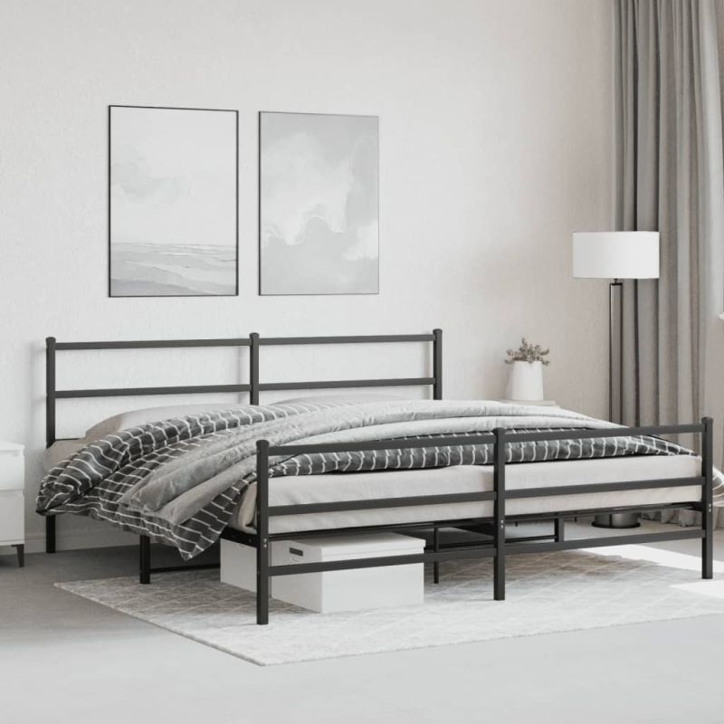 Метална рамка за легло с горна и долна табла, черна, 200x200 см