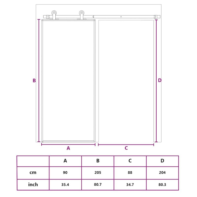 Плъзгаща врата, ESG стъкло и алуминий, 90x205 см, черна