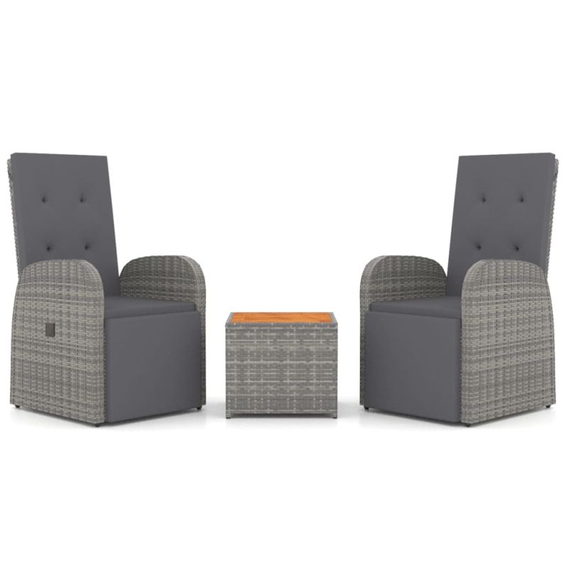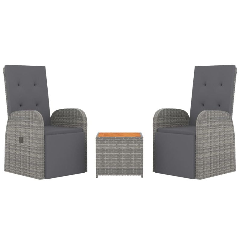 Градински лаундж комплект 3 части сив полиратан/акация масив