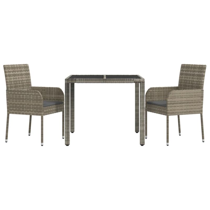 Градински трапезен комплект 3 части с възглавници сив полиратан
