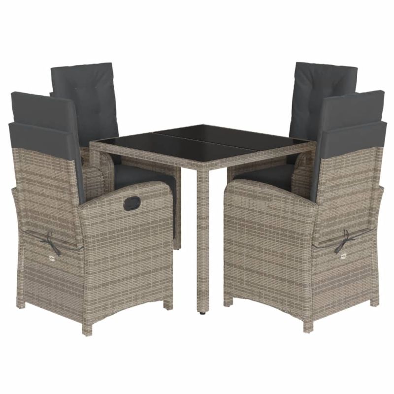 Градински трапезен комплект 5 части с възглавници сив полиратан
