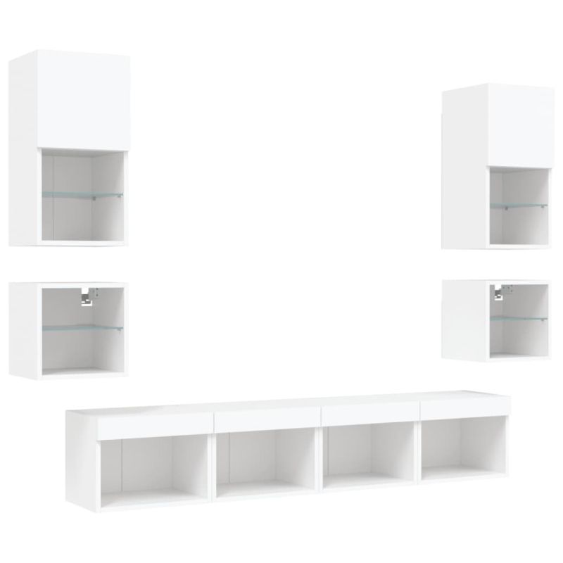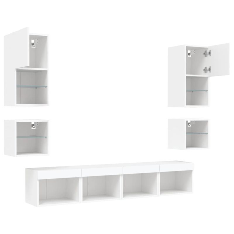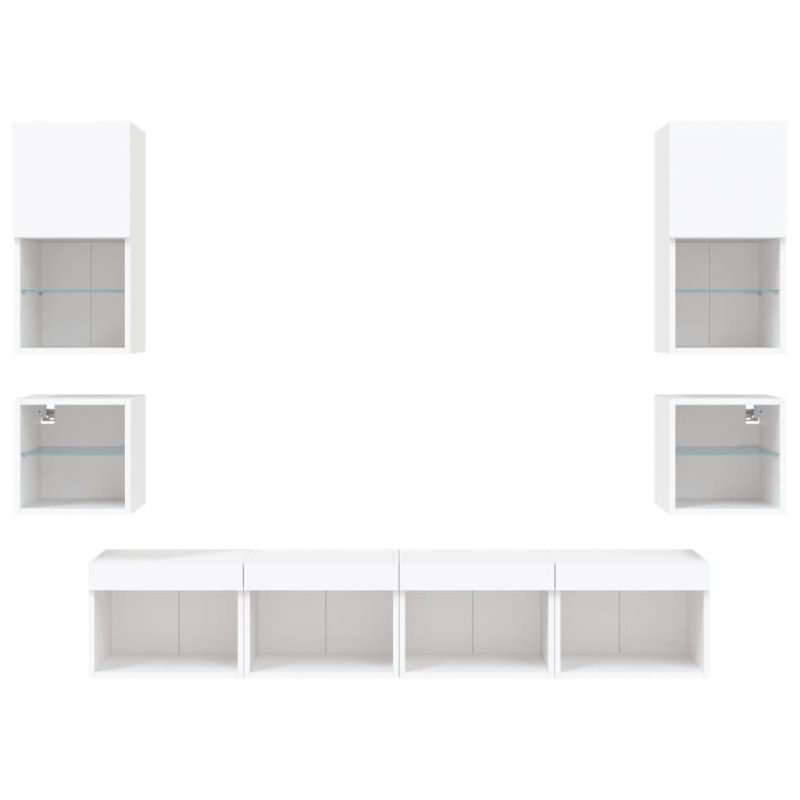 ТВ стенни модули с LED, 8 части, бели, инженерно дърво
