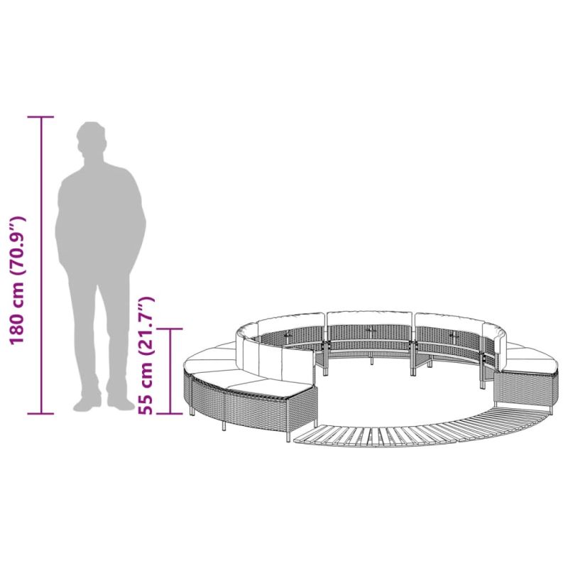 Подобрете спа изживяването за вас и вашите гости с това стилно ограждение за джакузи. Издръжлив материал: PE ратан, известен също като полиратан, е здрав синтетичен материал с малко необходима поддръжка, който прилича на естествен ратан. Той е лек, лесен за почистване и често се използва за външни мебели поради своята издръжливост и устойчивост на атмосферни влияния.Свалящ се и перящ се капак: Тези възглавници за сядане имат свалящи се калъфи за лесно пране и поддръжка. Калъфите на възглавниците за облегалките имат капак отзад за лесно прикрепване към облегалката.Стабилна и обезопасяваща стъпенка: Стъпенката е изработена от масивна акациева дървесина и предлага стабилна и здрава повърхност за безопасно стъпване.Дизайн с ламели: Дървената стъпенка за джакузи е с ламелен дизайн, който позволява лесно оттичане на водата и добавя естествен чар към ограждението на джакузито.Модулен дизайн: Тези външни мебели имат модулен дизайн, което ги прави напълно гъвкави и лесни за преместване, така че можете да създадете персонализирана подредба на външни мебели. Добре е да се знае:За да сте сигурни, че вашите външни мебели ще останат красиви, ви препоръчваме да ги защитите с водоустойчиво покривало.