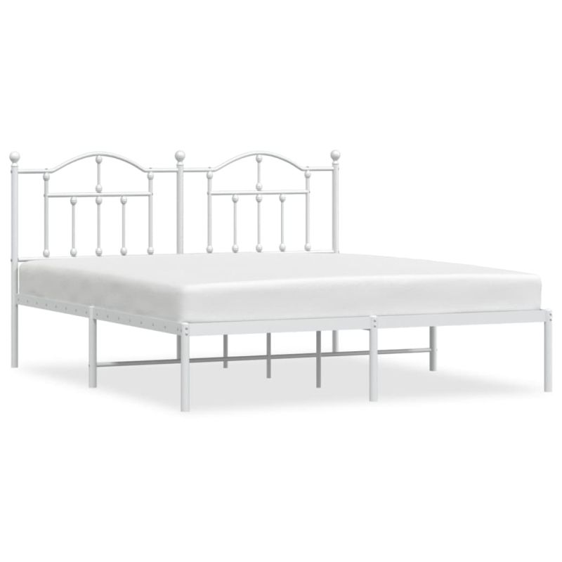 Метална рамка за легло с горна табла, бяла, 180x200 см