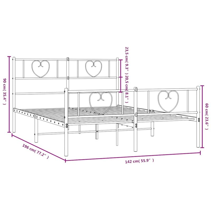 Метална рамка за легло с горна и долна табла, бяла, 135x190 см