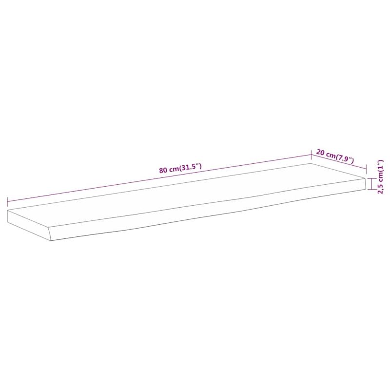 Стенен рафт, 80x20x2,5см, правоъгълен, масив акация, жив ръб