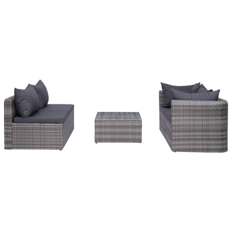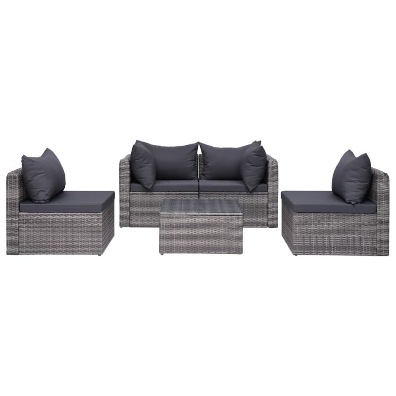 Градински комплект с възглавници, 5 части, полиратан, сив