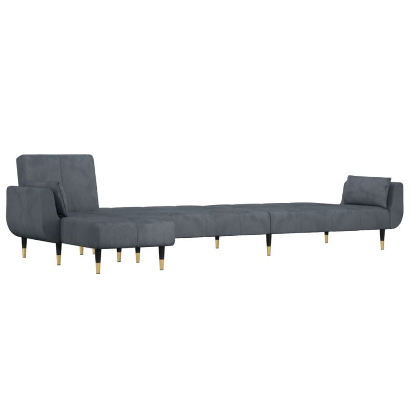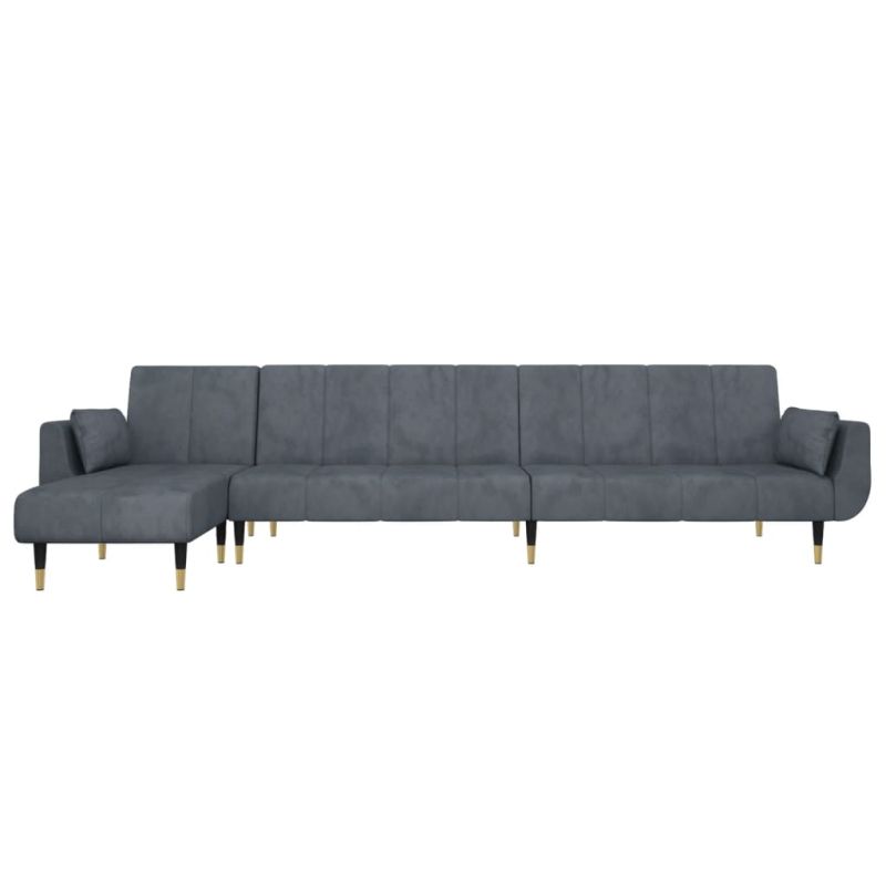 Г-образно разтегателно канапе тъмносиво 275x140x70 см кадифе