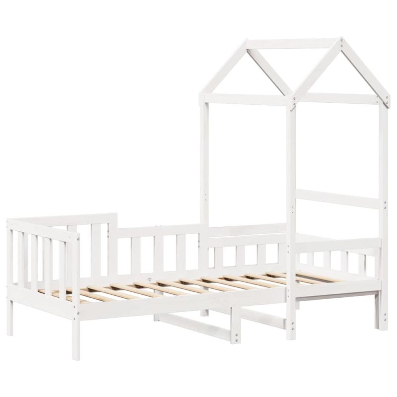 Това универсално дървено легло може да се използва като легло в спалнята и също така е идеално като диван във всекидневната. То отговаря идеално на различните ви нужди, като ви осигурява много място за сън и почивка. Масивна борова дървесина: Масивната борова дървесина е красив естествен материал. Боровата дървесина е с продълговати шарки, а чеповете придават на материала характерния му рустик вид.3-странни релси за легло: Това комбинирано легло има уникален дизайн на страниците на леглото, осигурявайки чувство за сигурност и добавяйки нотка на изискан стил в дома ви.Дизайн с ламели: Дървената решетъчна основа позволява по-добра циркулация на въздуха, за да се запази матракът свеж за по-дълго време, като подобрява капацитета на леглото по отношение на теглото и осигурява стабилност.Допълнително място за съхранение: Използвайте максимално пространството под леглото, за да съхранявате различни предмети. Перфектно за съхранение на кутии за организиране на вашите дрехи, играчки или юргани.Страхотно забавление: Като комбинирате покрива с дневното ви легло, можете да създадете скривалище, което предлага на детето ви много забавления преди лягане. Това иновативно допълнение не само ще бъде вълнуваща фокусна точка, но и ще внесе удивление и вълнение в помещението.Отворена странична врата: Покривът разполага с отворена странична врата, осигуряваща лесен достъп за вашите деца да влизат и стават от леглото. Добре е да се знае:Към това легло не е включен матрак. Ние предлагаме разнообразна селекция от матраци. Можете да проверите нашия магазин за подходящ матрак.