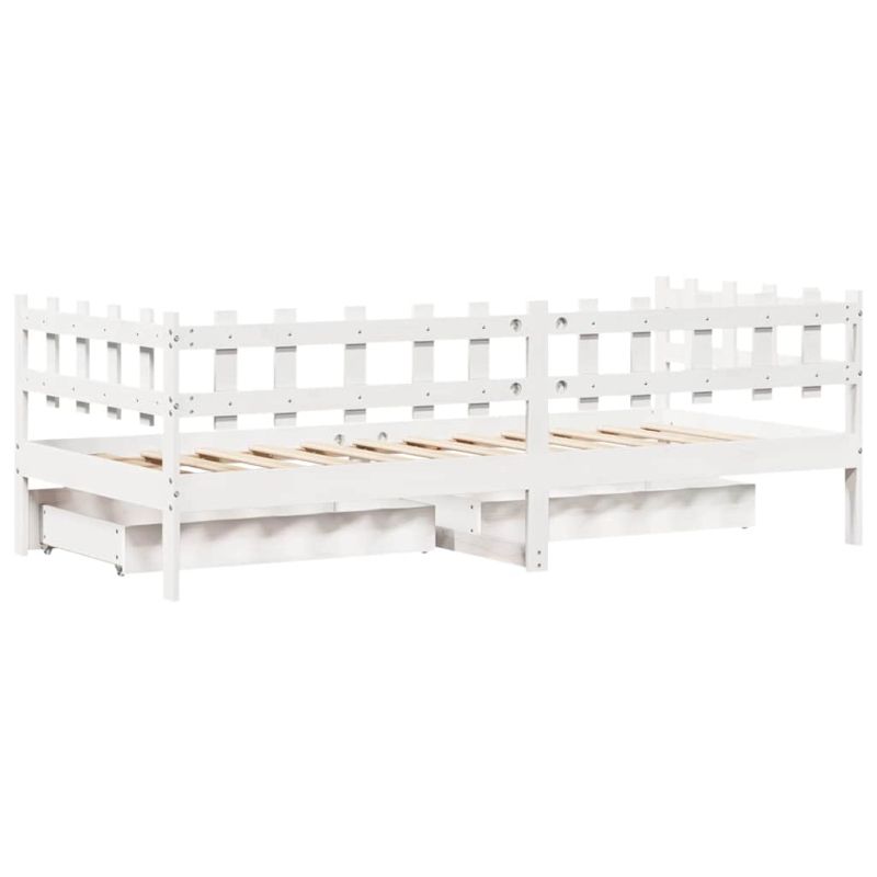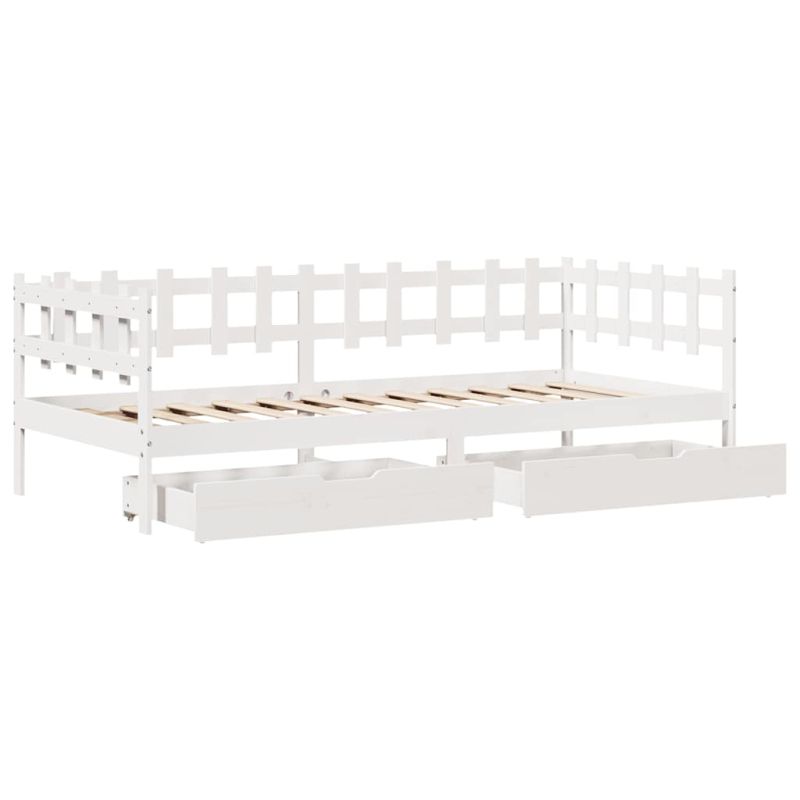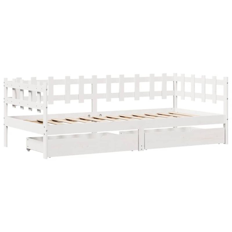 Легло с чекмеджета, без матрак, бяло, 90x200 см, масивно дърво