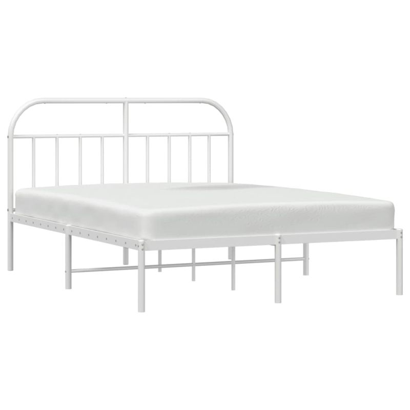 Метална рамка за легло с горна табла, бяла, 180x200 см