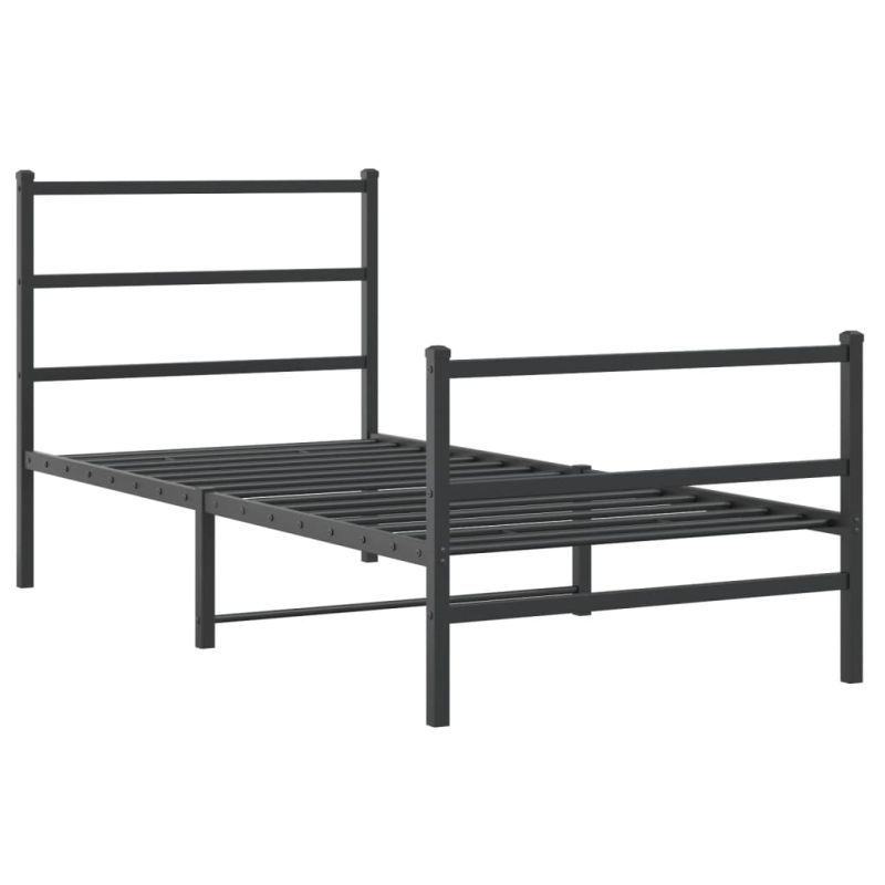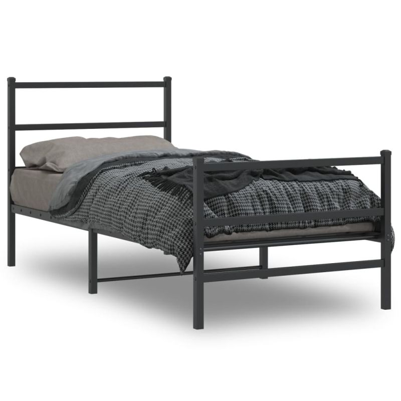 Метална рамка за легло с горна и долна табла, черна, 90x200 см