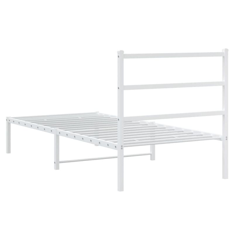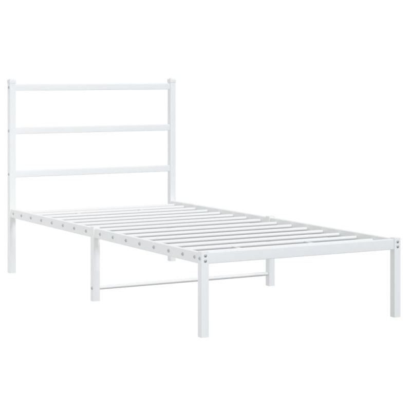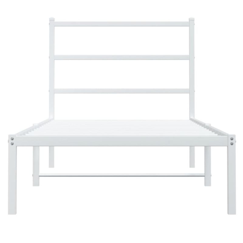 Метална рамка за легло с горна табла, бяла, 90x190 см