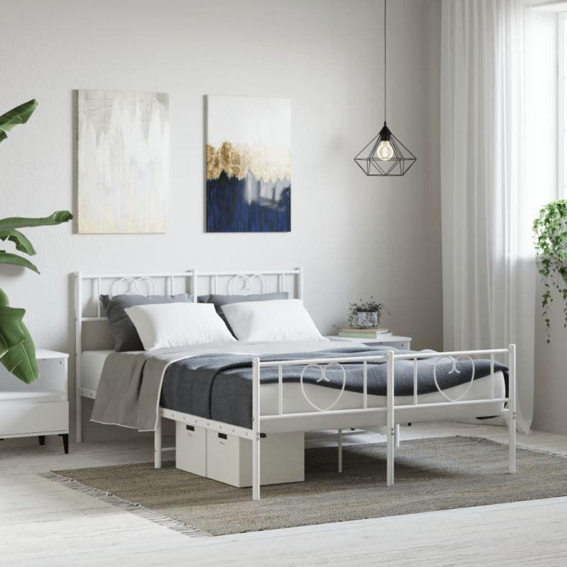 Метална рамка за легло с горна и долна табла, бяла, 120x200 см