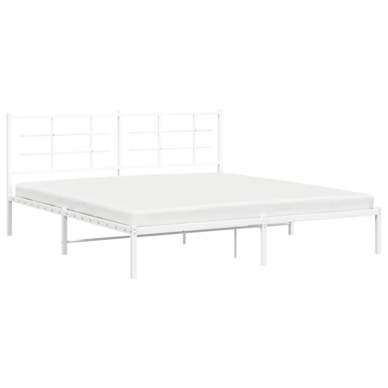 Метална рамка за легло с горна табла, бяла, 180x200 см