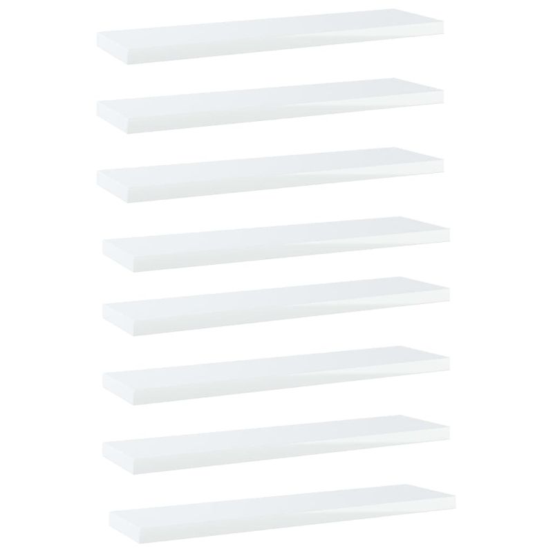 Рафтове, 8 бр, бял гланц, 40x10x1,5 см, инженерно дърво