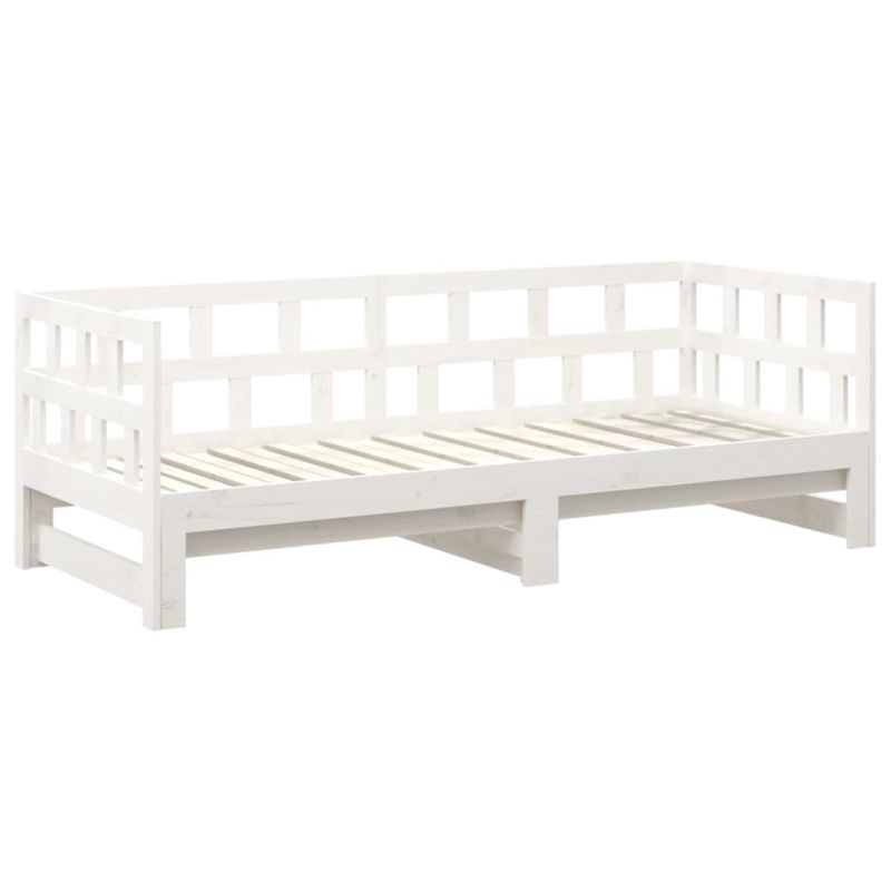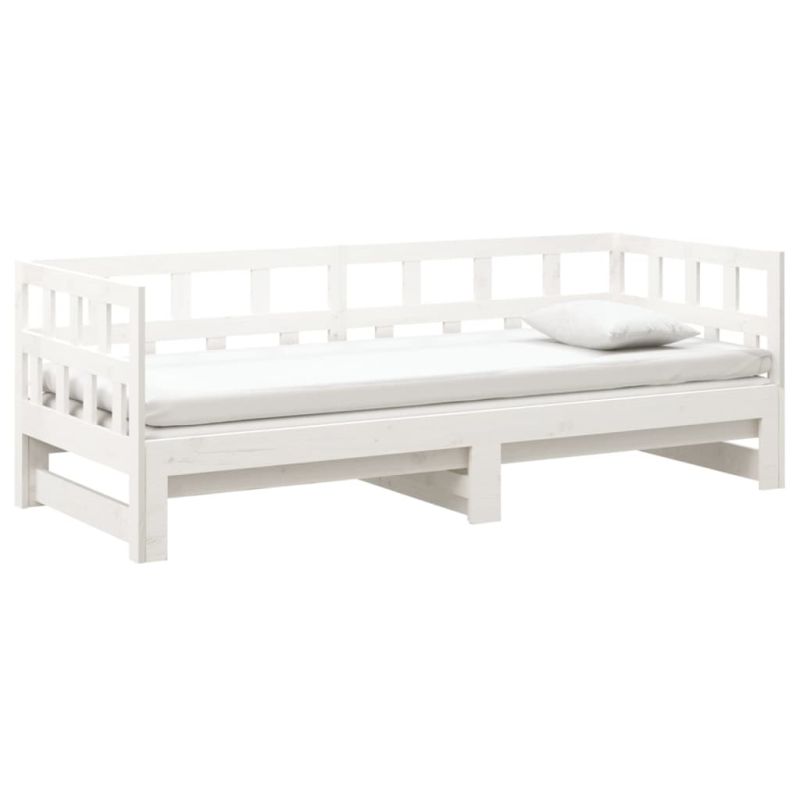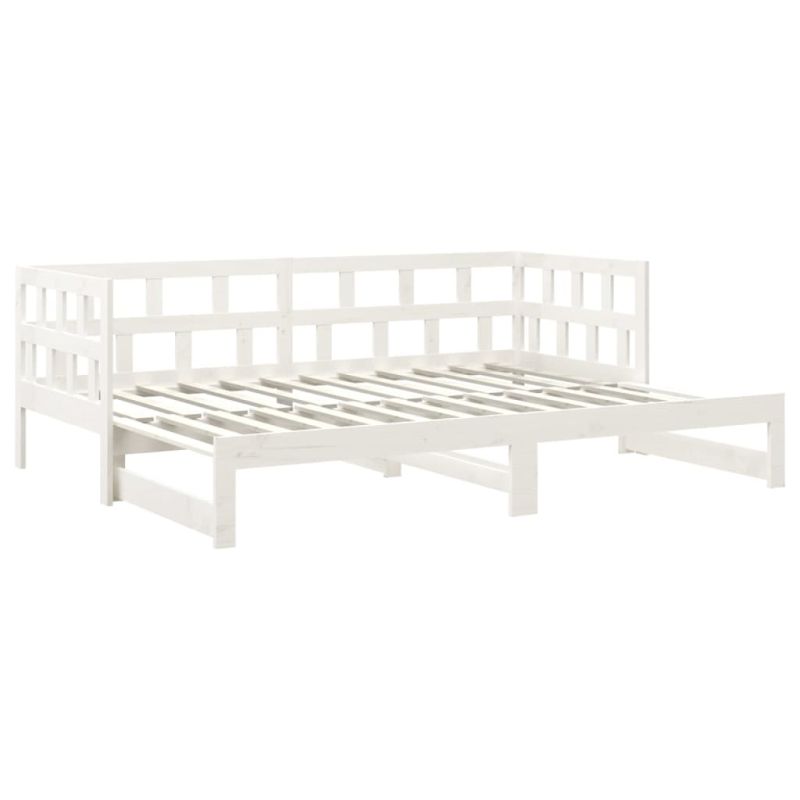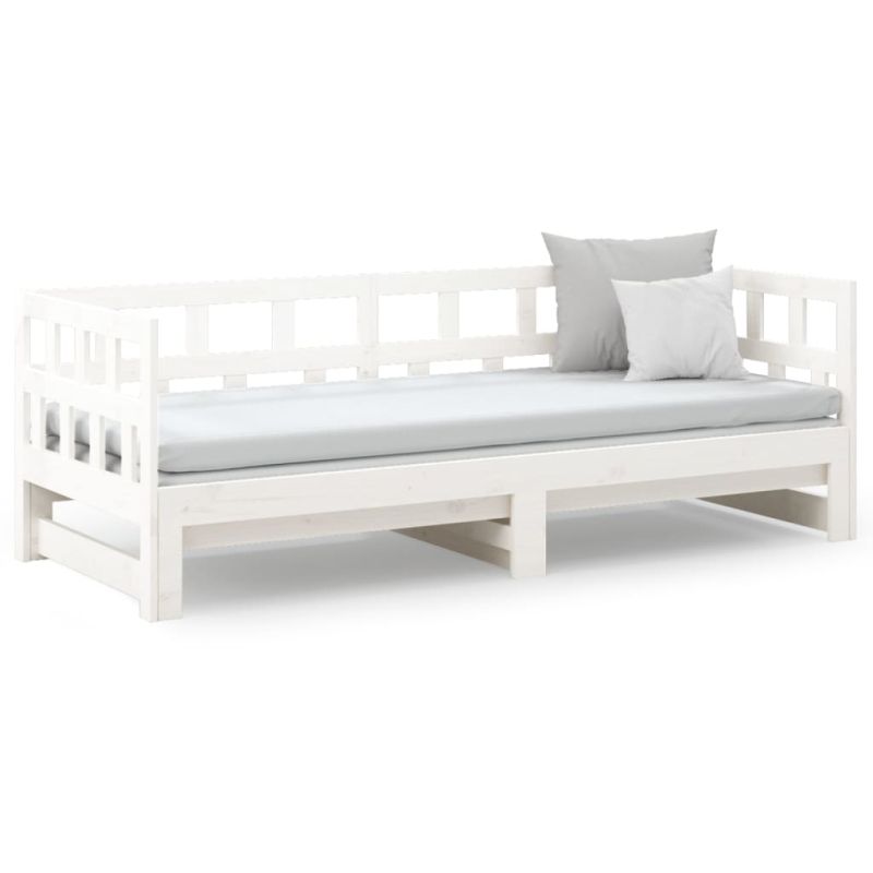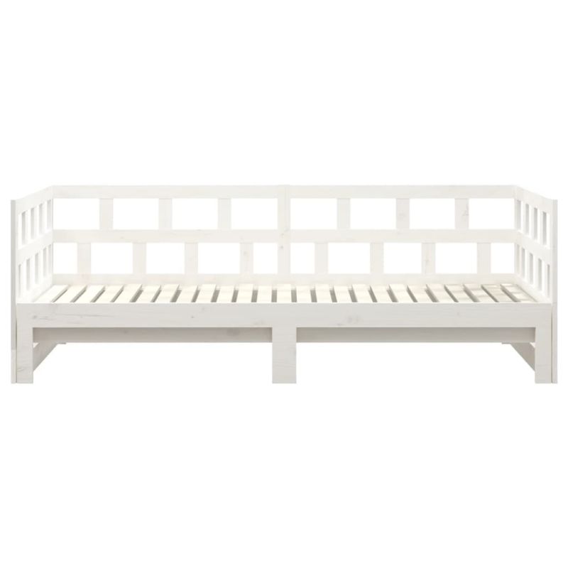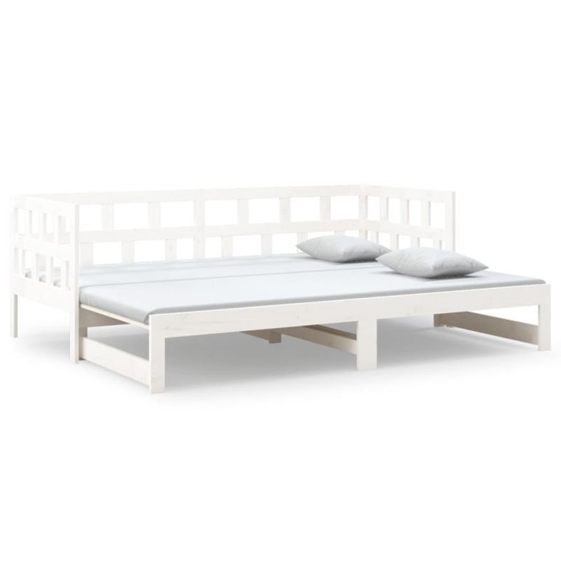 Разтегателна кушетка, бяла, борово дърво масив, 2x(80x200) см