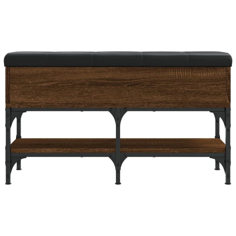 Дръжте обувките си добре организирани и винаги подръка с тази пейка за обувки! Здрава конструкция: Инженерната дървесина е с изключително качество с гладка повърхност и се отличава със здравина, стабилност и устойчивост на влага. Металните рамки също така осигуряват здравина и стабилност на пейката.Достатъчно място за съхранение: Пейката за коридора разполага с голямо място за съхранение, за да поддържате обувките си добре организирани и предлага чиста и свободна от бъркотия всекидневна зона.Удобно сядане: Гъсто подплатената възглавница на седалката осигурява оптимален комфорт за сядане при обуване и събуване.Функционална употреба: Пейката е идеална за използване като пейка за обувки в коридора или пейка за съхранение в хола.