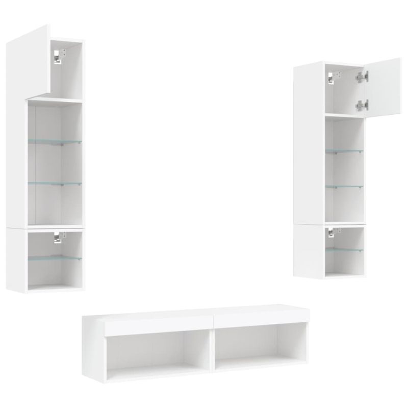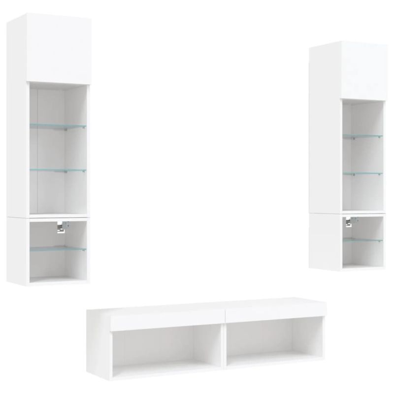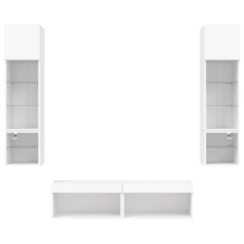 ТВ стенни модули с LED, 6 части, бели, инженерно дърво