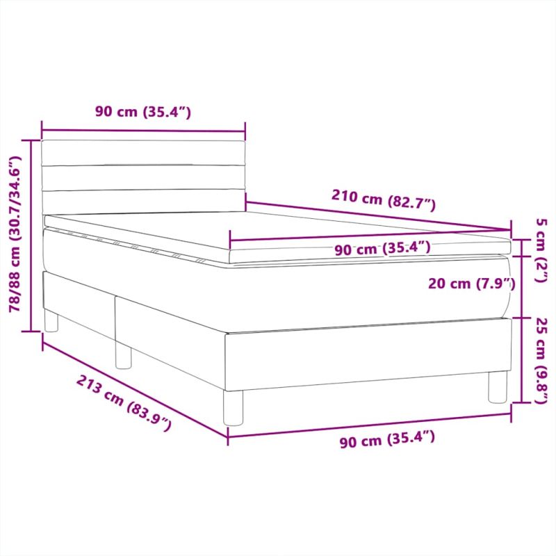 Използвайте това боксспринг легло, за да се насладите на спокоен сън! Предлага ви максимален релакс и приятен сън. Мек и удобен материал: Кадифената материя се отличава с мека и гладка повърхност, която създава приятно усещане върху кожата, като ви носи топлина и максимален комфорт.Матрак с джоб пружини: Този матрак с джоб пружини има индивидуални пружини с джобчета, които работят независимо, за да осигурят персонализирана опора, като реагират само на натиска във всяка област. Този дизайн предотвратява "свличането" към средата на матрака и намалява прехвърлянето на движение в сравнение с традиционните матраци с отворени намотки. Всяка покет пружина поддържа тялото индивидуално.Табла с регулируема височина: Таблата се регулира на височина, за да отговаря на вашите предпочитания.Удобен горен матрак: Този топ матрак подобрява опората и комфорта със своята мека, дишаща повърхност, като същевременно удължава живота на вашия матрак. Подвижният му калъф позволява лесно изпиране, което прави поддръжката лесна.Ламели за оптимална опора: Рамката на леглото е пълна с ламели, за да предложи нужните опора и дишане за вашия матрак. Добре е да се знае:От хигиенни съображения матракът не може да бъде върнат, ако опаковката е отстранена или отворена.