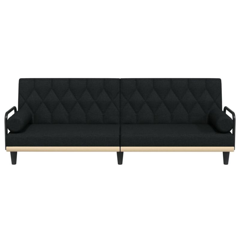 Разтегателен диван с подлакътници, черен, плат