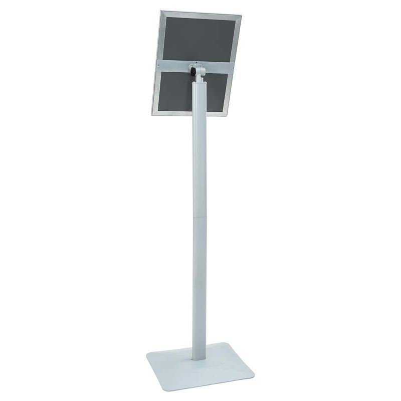 Подставката за постери е практично решение за показване на печатни материали в бизнес и търговски среди. Здравата ѝ основа и регулируемият дисплей предлагат ясна презентация на информацията или рекламните графики. Подходяща е за приемни, търговски площи и изложбени настройки, предлагайки функционално решение, където се изисква гъвкавост и яснота. Състав на материала: Стойката е с солидна чугунена основа и алуминиева рамка, осигуряващи стабилност. Дисплейният панел е от PS платка с PVC защитно фолио за гладка повърхност, идеална за смяна на постерите. Регулируема функция на дисплея: С въртящ механизъм, стойката предлага 360° въртене и 180° наклон, осигурявайки удобство за различни позиции и ъгли на гледане. Широко приложение: Подходяща за офис приемни, търговски пространства, изложби и други места. Нейният неутрален дизайн позволява лесна интеграция, без да отвлича вниманието от съдържанието. Необходими за сглобяване: Стойката идва като готова единица и може да се сглоби лесно с основни инструменти. Лесна поддръжка: Просто едно бърсане с влажна кърпа поддържа чист и представителен вид.