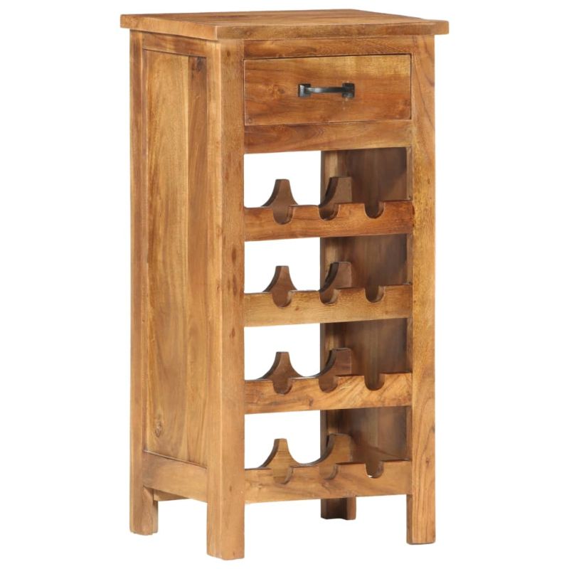 Този дървен шкаф за вино с рустик чар определено ще бъде чудесно допълнение към вашия интериор. Бюфетът е изработен от акациево дърво масив с красив финиш, получен чрез полиране и лакиране, за да придобие изискан вид. Този шкаф е изцяло ръчна изработка. Красивите дървесни шарки правят всяка мебел уникална и малко по-различна от останалите. Той осигурява достатъчно място за съхранение и подреждане на вашите бутилки, чаши, отварачки и други принадлежности за вино. Можете да съхранявате също и предмети, като книги или декоративни елементи. Продуктът е вече сглобен; не се изисква монтаж. Важна забележка: Цветовете на всеки артикул варират, което прави всяка мебел уникална. Доставката е на случаен принцип.
