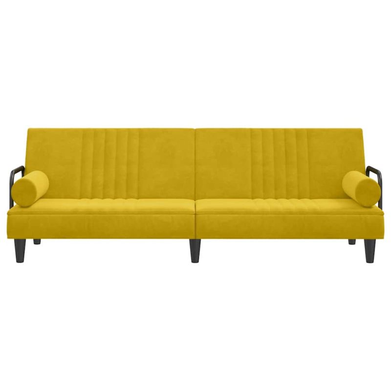 Разтегателен диван с подлакътници, жълт, кадифе