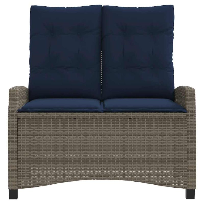 Накланяща се градинска пейка с възглавници сив полиратан