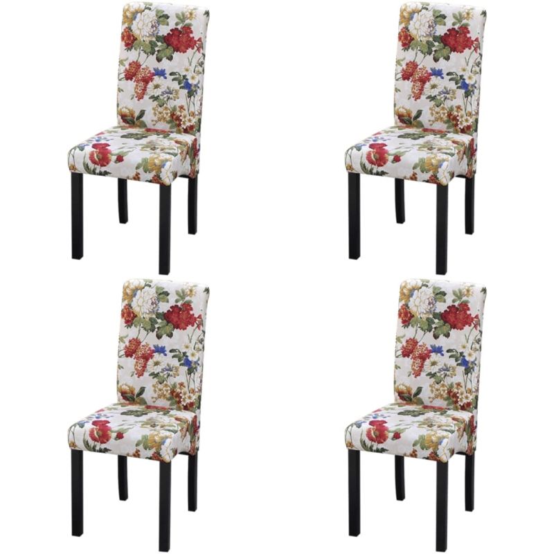 Тези висококачествени трапезни столове имат романтичен флорален десен и ще придадат на вашето жизнено пространство цветно и стилно докосване. Столовете ще бъдат идеални за вечеря в трапезарията или за четене и релакс в хола. Благодарение на краката от стабилна дървесина, столовете са издръжливи и стабилни. Дебело подплатените седалки и облегалки допринасят за техния превъзходен комфорт. Доставката включва 4 трапезни стола.