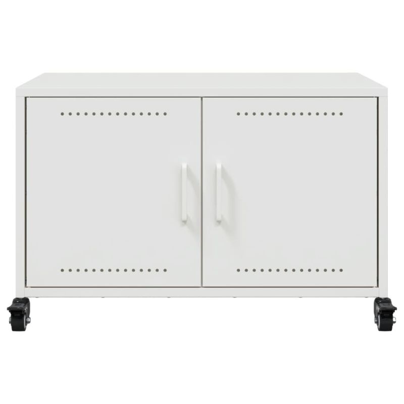 Този ТВ шкаф е семпъл и практичен, идеално пасващ на вашата всекидневна. Издръжлив материал: Стоманата е изключително твърд и здрав материал. Тя предлага здравина и стабилност. Студеновалцуваните стоманени плочи имат добро качество на повърхността и висока точност на размерите.Декоративна функция: Здравата горна част на медийния модул е идеална за нареждане на декоративни предмети, като рамки за снимки и растения.Просторно място за съхранение: Този ТВ модул предлага 2 врати, което го прави идеално място за съхранение на всички ваши списания, DVD дискове и други предмети.Лесна поддръжка: Този ТВ шкаф с устойчива на петна повърхност се избърсва лесно и можете без усилие да поддържате масата да изглежда най-добре.Лесно преместване: Този шкаф има 4 колела което позволява гъвкаво движение и стабилно паркиране по всяко време.