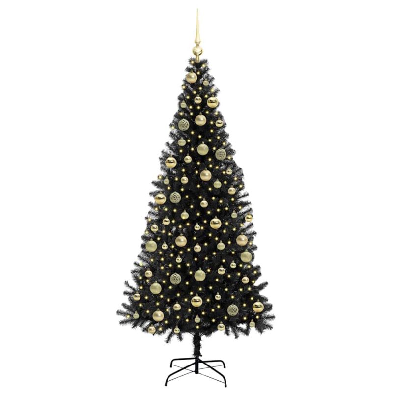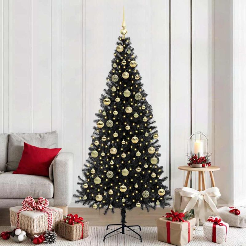 Начало Дом и градина Декор Сезонни и празнични декорации Коледни елхи Коледно дърво с 300 LED светодиода с поставка Черно 210 cm ПВЦ