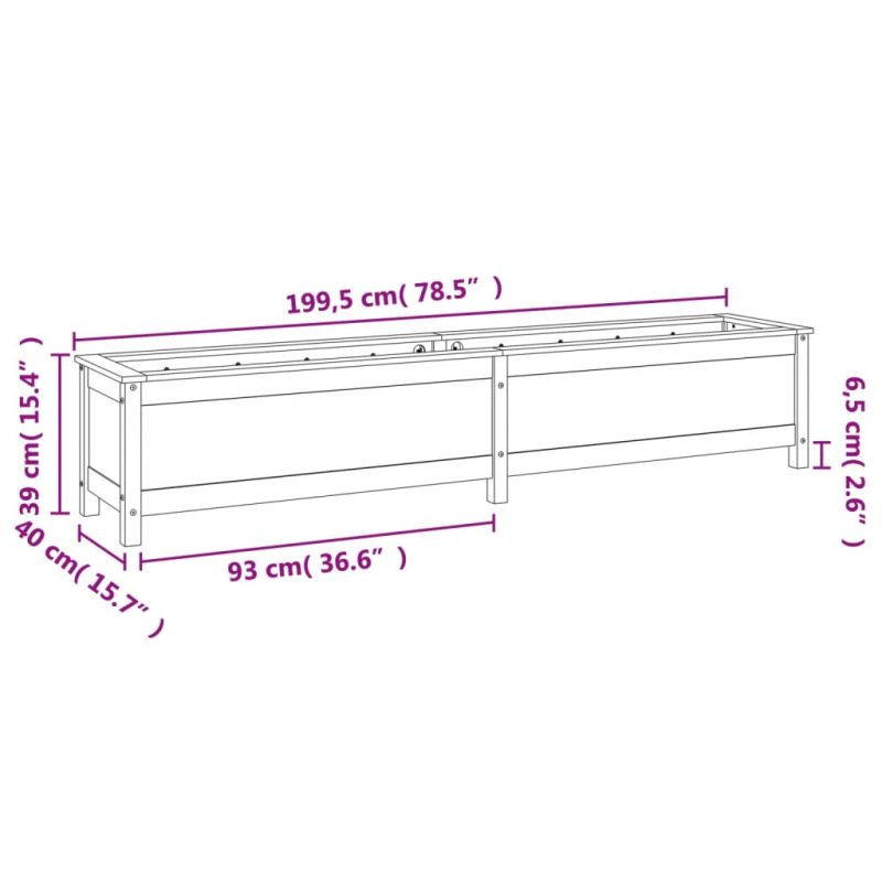 Градинско повдигнато легло, сиво, 199,5x40x39 см, бор масив