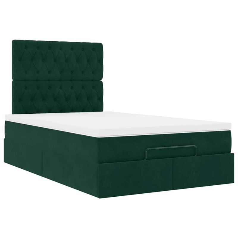 Османска легло с матраци и LED, тъмнозелено, 120x190 см, кадифе