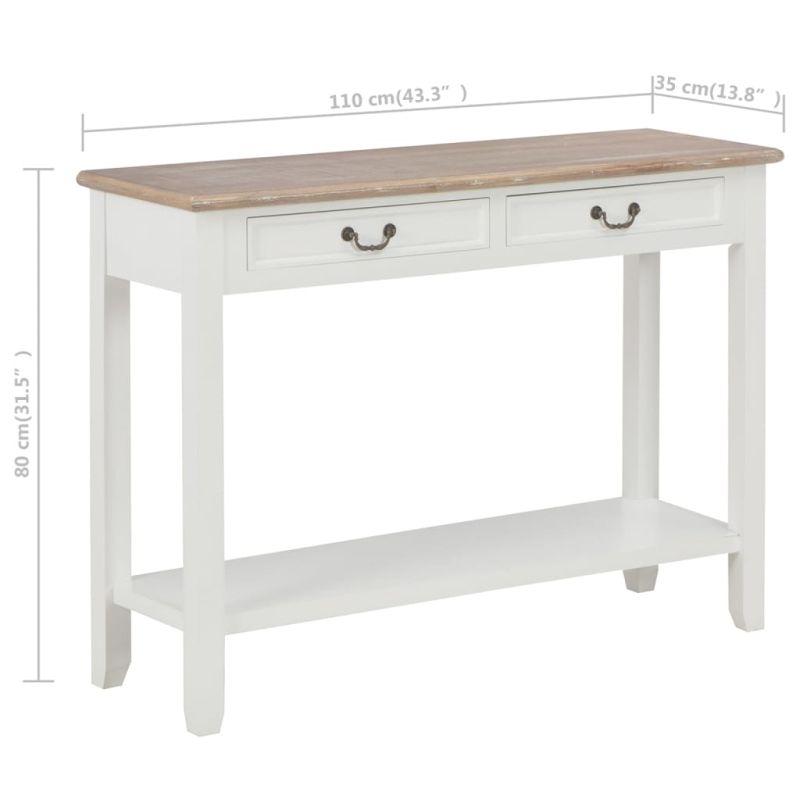 Конзолна маса, бяла, 110x35x80 cм, дърво
